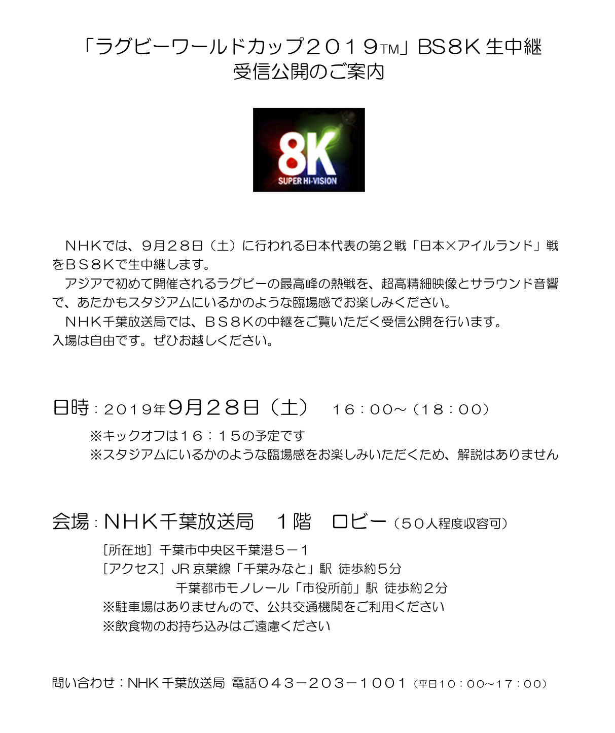 「ラグビーワールドカップ2019TM」BS8K生中継