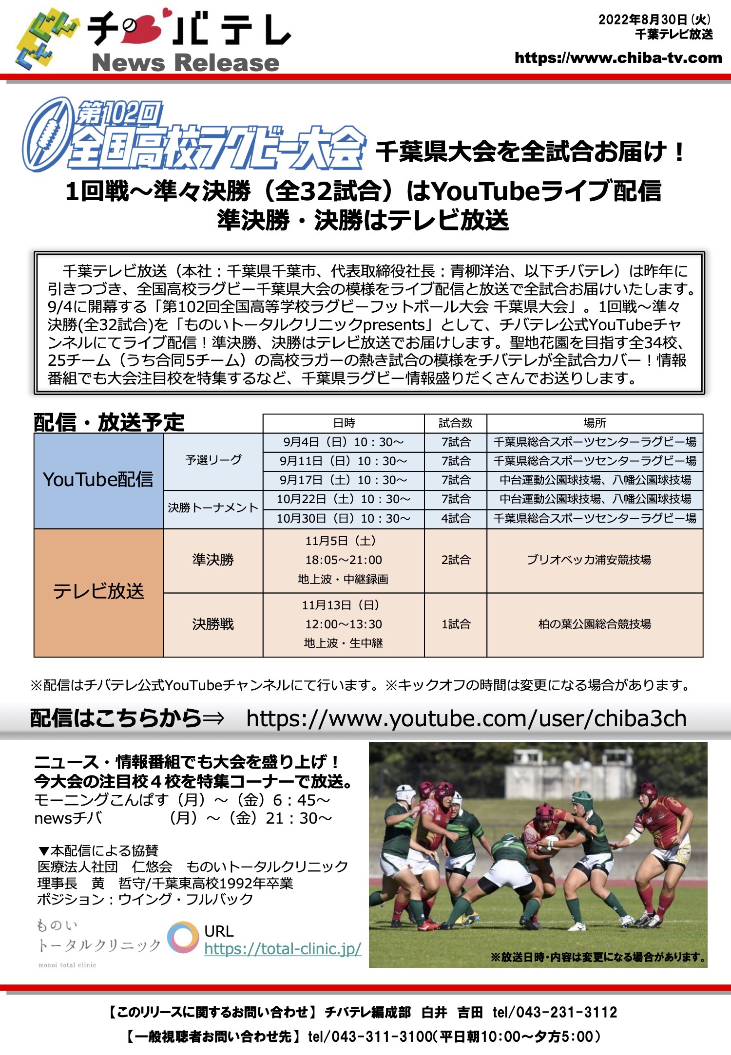 第102回 全国高校ラグビー大会 千葉県予選 全試合ライブ中継