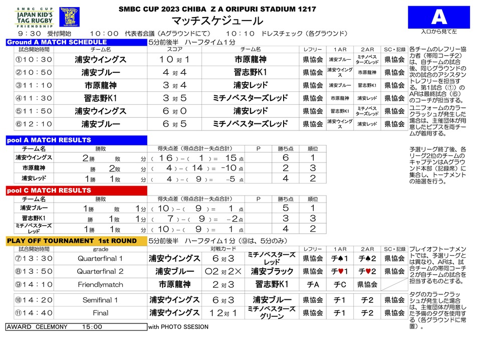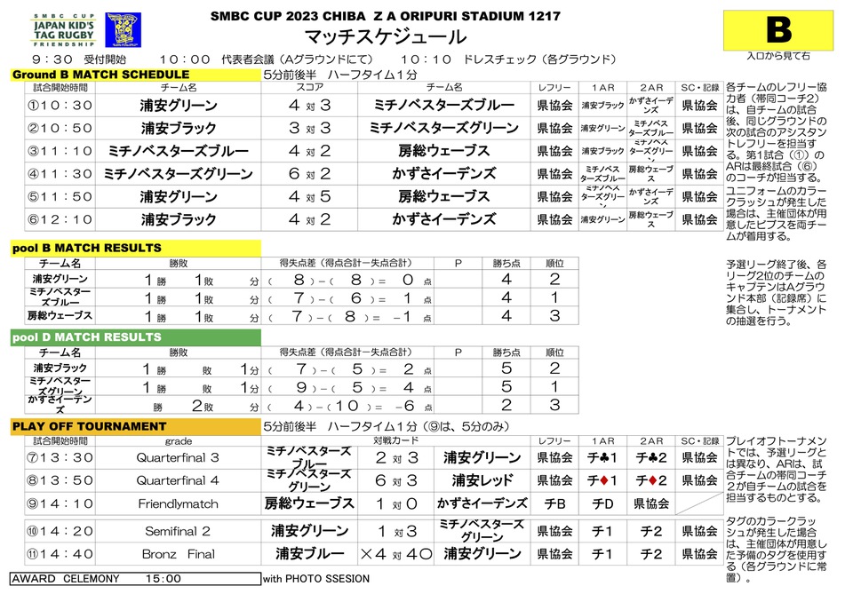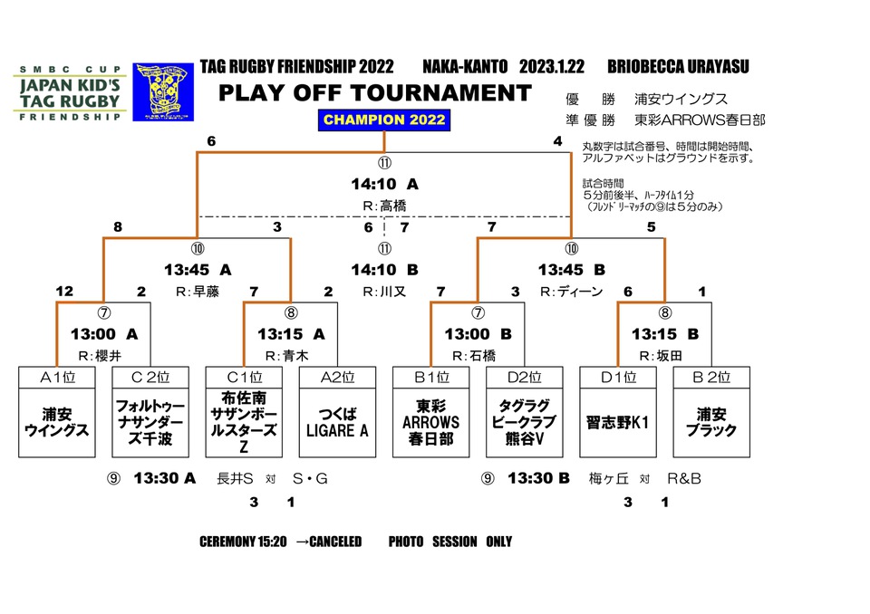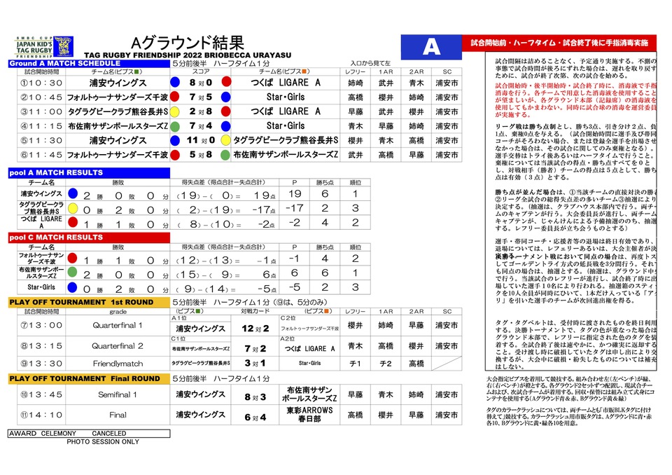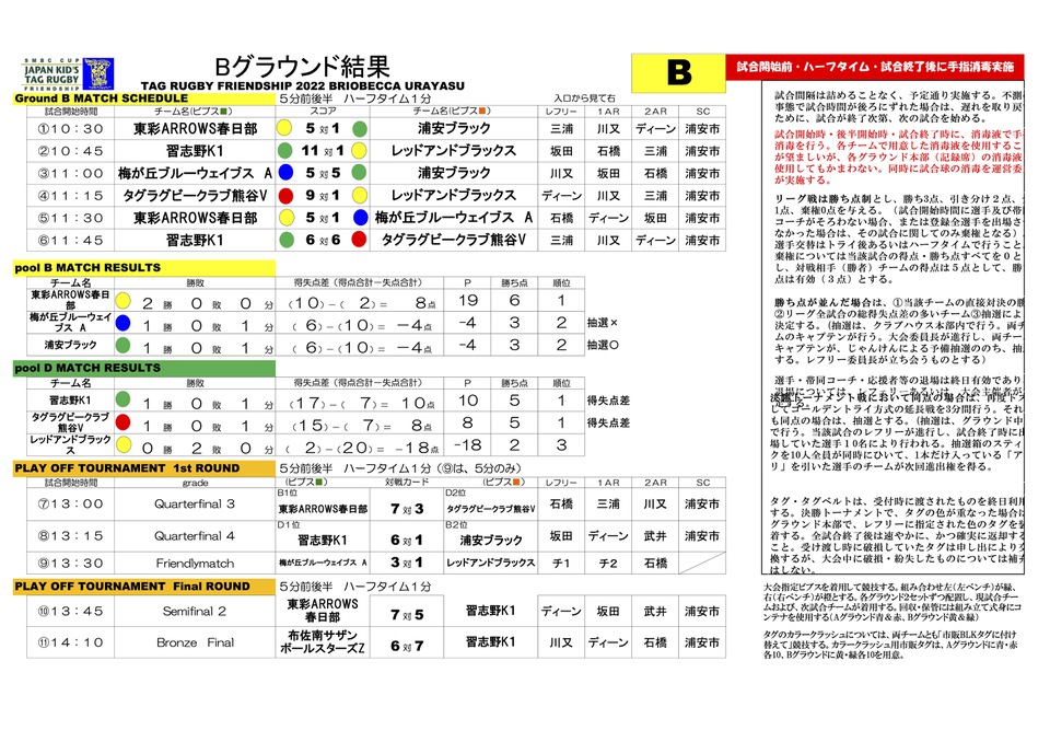 ■埼玉県‐上尾プラチナキッズA(埼玉小学生連合)、荒木スピリッツA(行田市立荒木小学校)、上尾プラチナキッズB(埼玉小学生連合)、熊谷A(熊谷タグラグビークラブ)