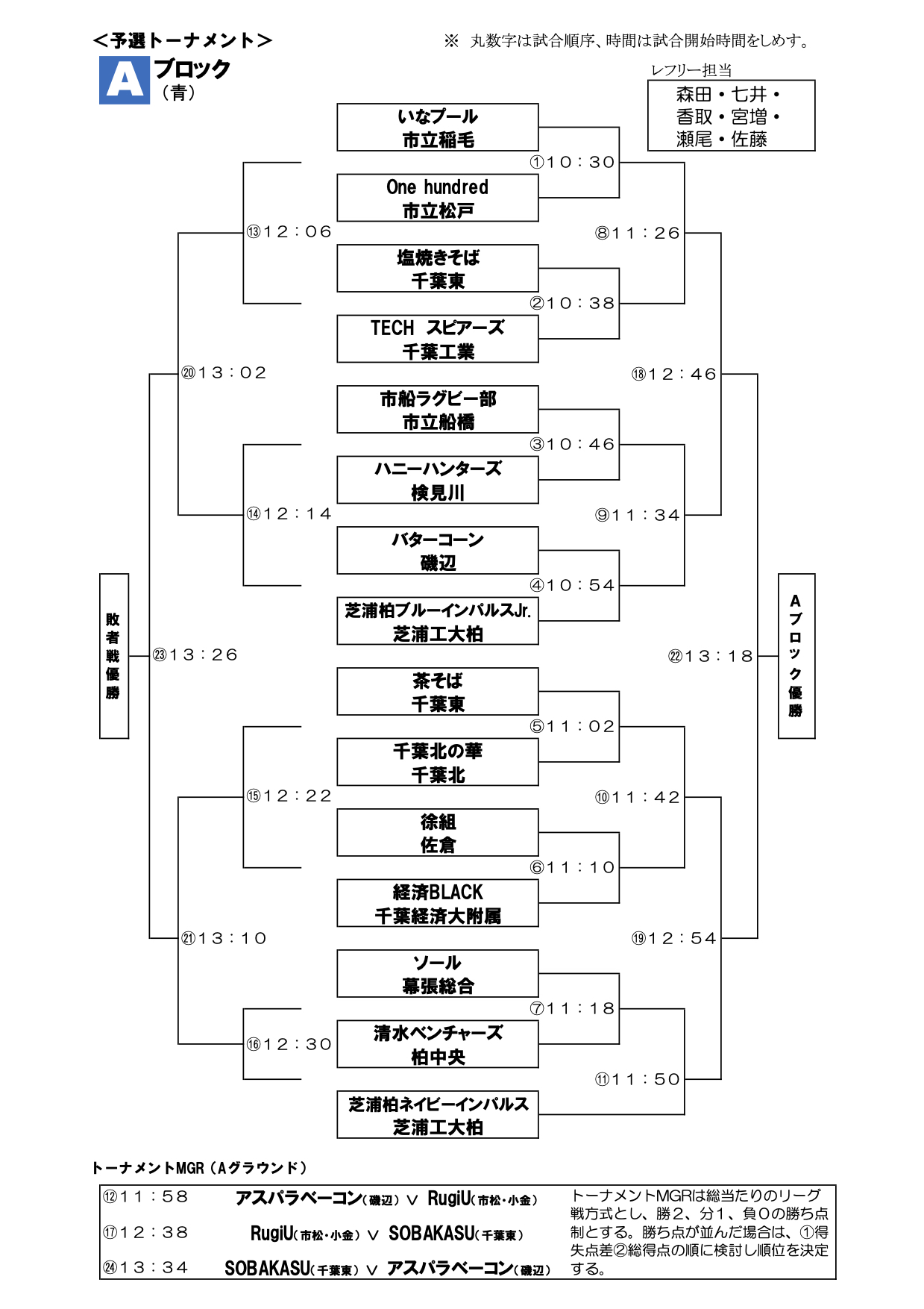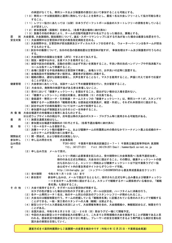 1.目 的 千葉県高校新人体育大会(ラグビー)の予選リーグ敗退チームに対して、試合機会を提供することにより、