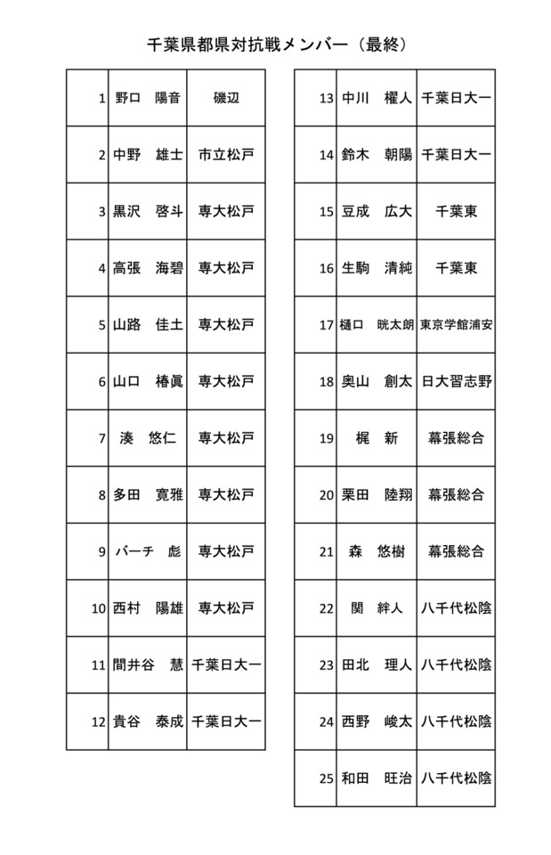平成30年度 第19回都県対抗戦 千葉県選抜U17メンバー