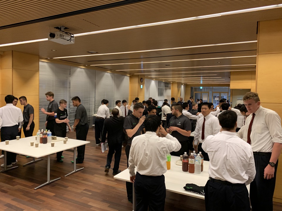 ・ラグビー教室終了後、選手3名はパブリックビューイングのゲスト解説者として参加します。