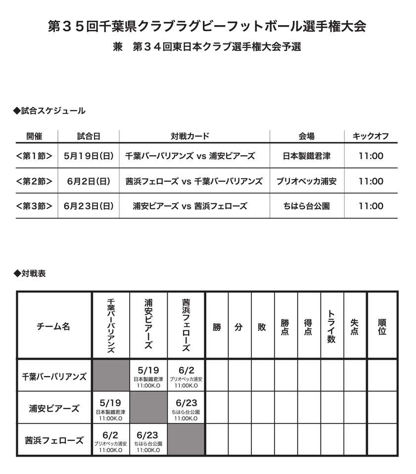 千葉バーバリアンズのゲームは以下のスケジュールで行われます。