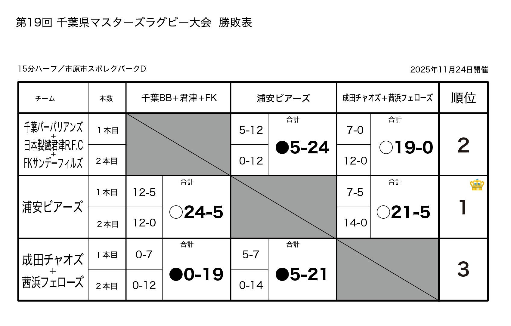 今年度の千葉県マスターズ大会も昨年同様のチーム数と合同内容、